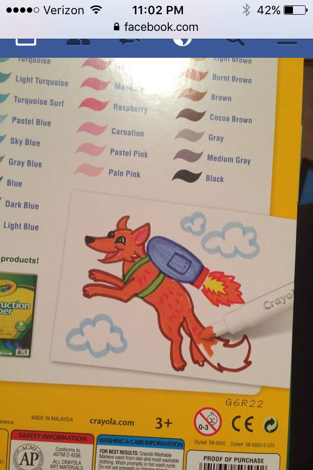 You can imagine my surprise when a Facebook friend sent me the following image of the back of a Crayola marker package: