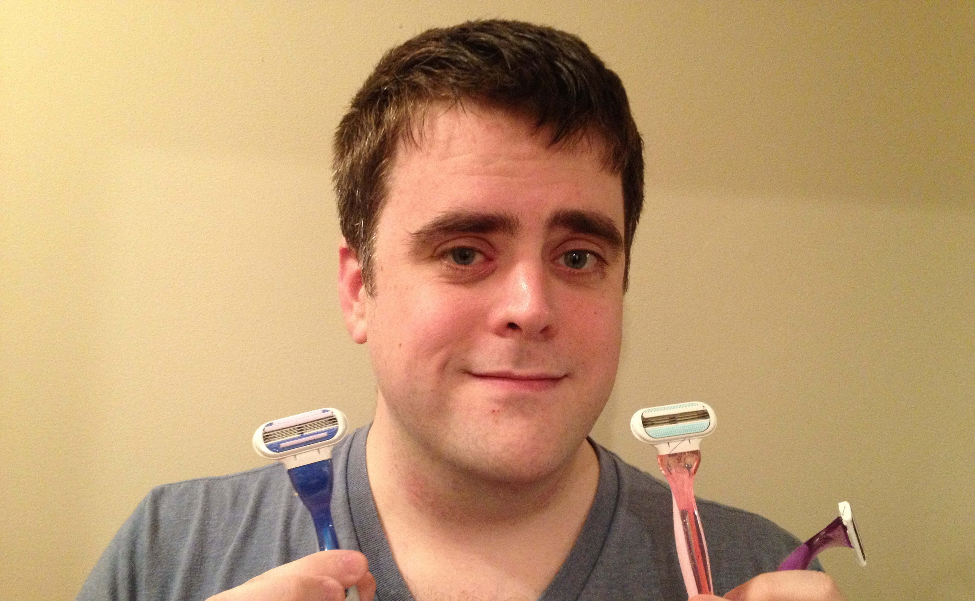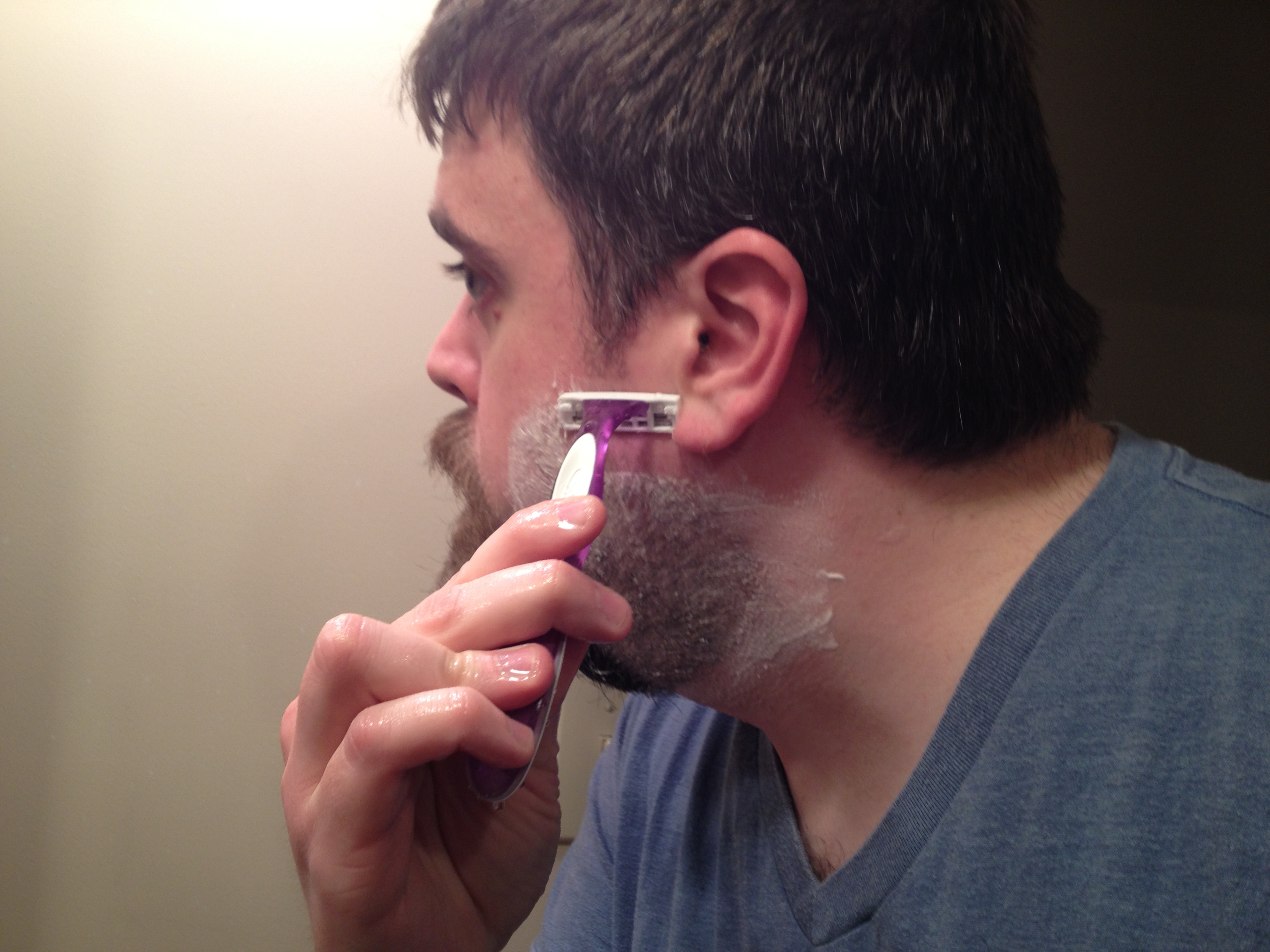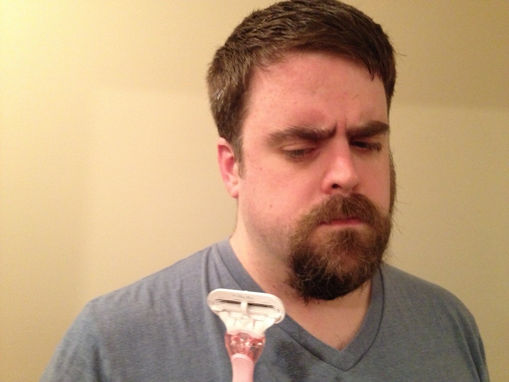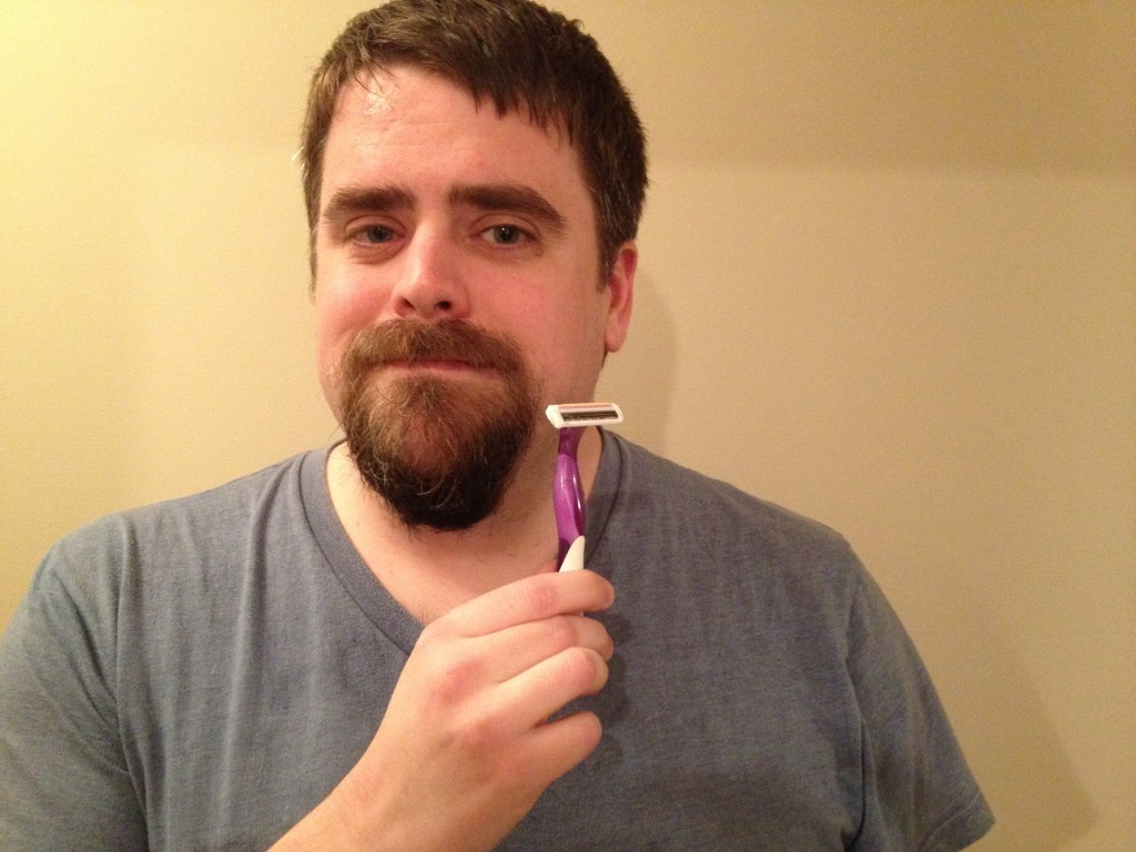 It was time to shave off my beard and this was the perfect opportunity to test out lady razors. I have never used a lady razor before, but I always wondered what the difference is between a men’s razor and a women’s razor, besides the color. Both are multi-blade razors. Both have magical strips of moisturizer. Both are featured in awful, awful commercials. So is there a difference? Let’s find out!