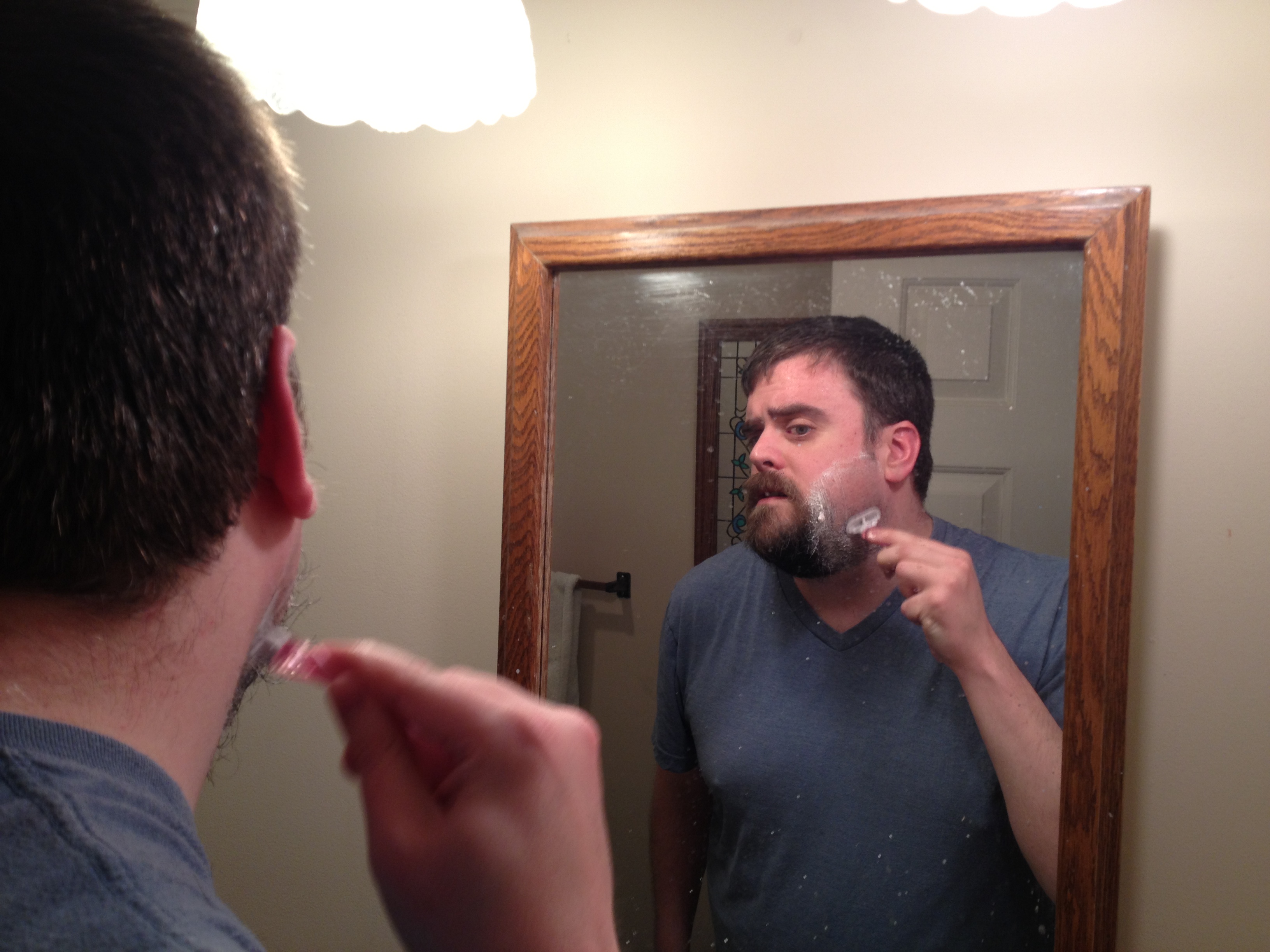 Keep in mind, this was the first time my face was shaved since October of 2012. The shave was rough and I had to run the blade over my face a few times before it really started to chop down the whiskers. Maybe it was the razor. Maybe my beard was fighting for its life. Either way, it was an epic battle and some whiskers were brutally tugged out of their home.