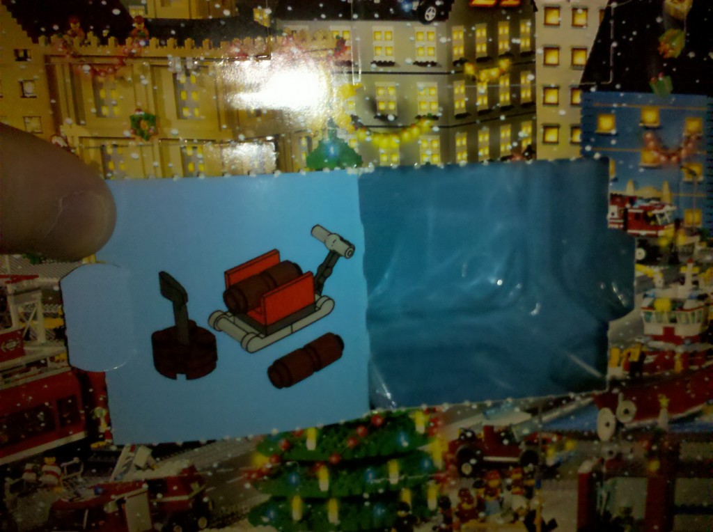 The Lego Calendar is getting lighter and lighter. Good World is getting more and more crowded. It’s all so exciting. What should I do with the box once all the Legos have been safely delivered to Good World? I could use the plastic compartments to make big ice cubes. Better yet, a Lego Prison! With a little tape, glue, or gum, these cardboard doors can be sealed shut to imprison the wicked Lego Folk.