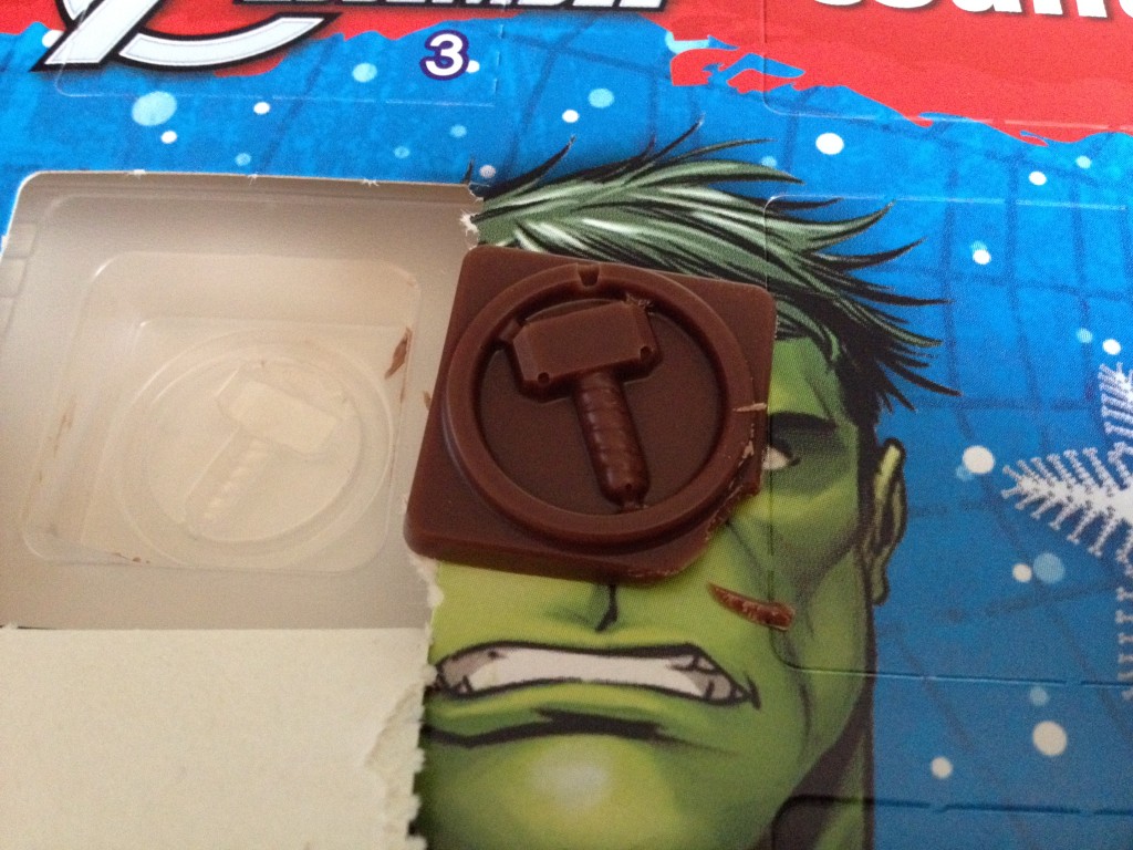 Also…I’m adding this cheap Avengers chocolate Advent Calendar to the mix. I paid $2 for it and it’s already worth the price.