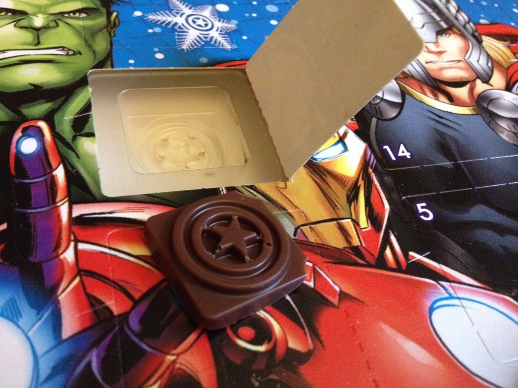 Today’s Avengers chocolate piece was in the shape of Captain America’s shield. Now that it’s in my stomach, I’m pretty sure my belly is bullet-proof, at least for the next six to eight hours.