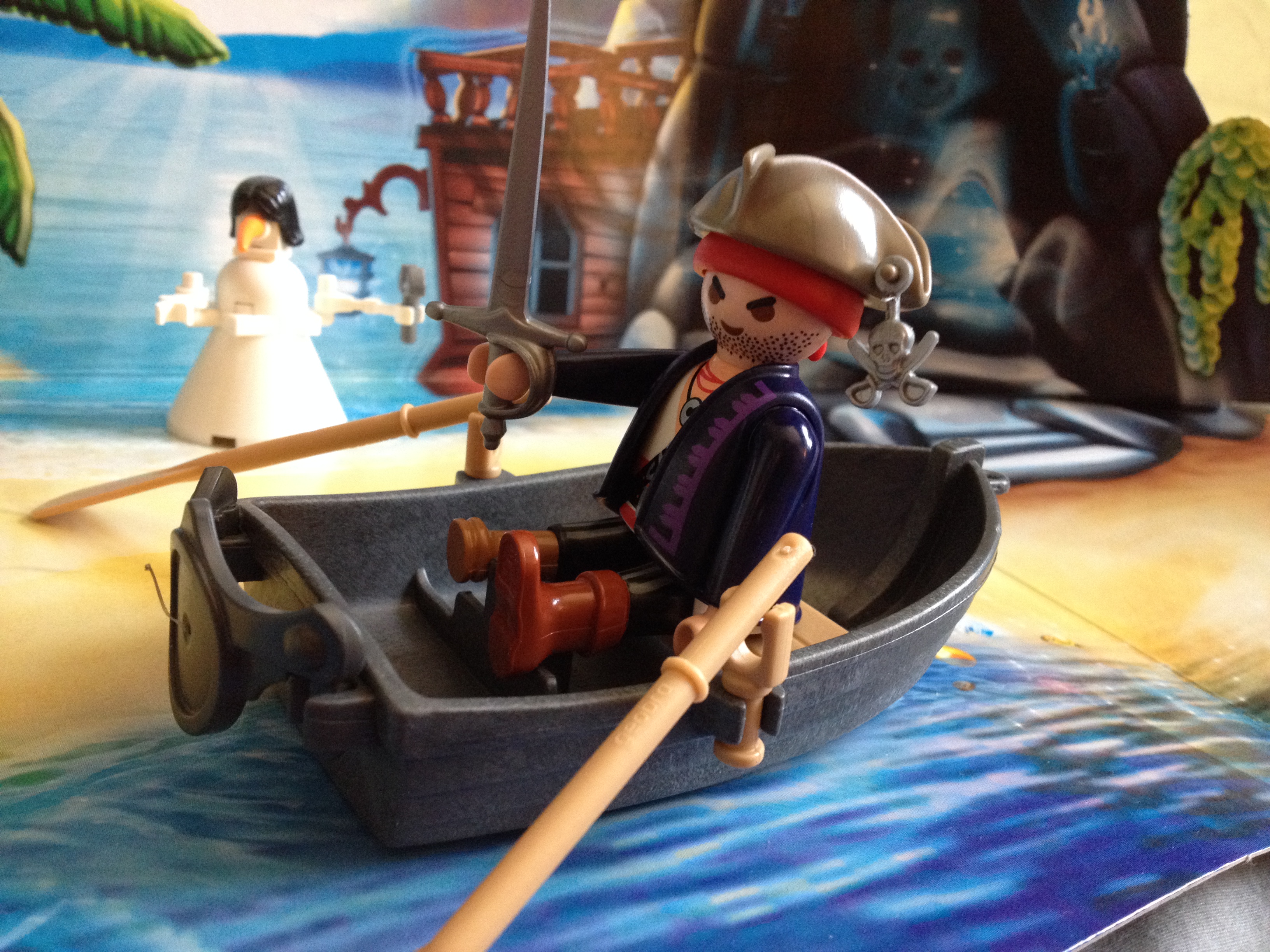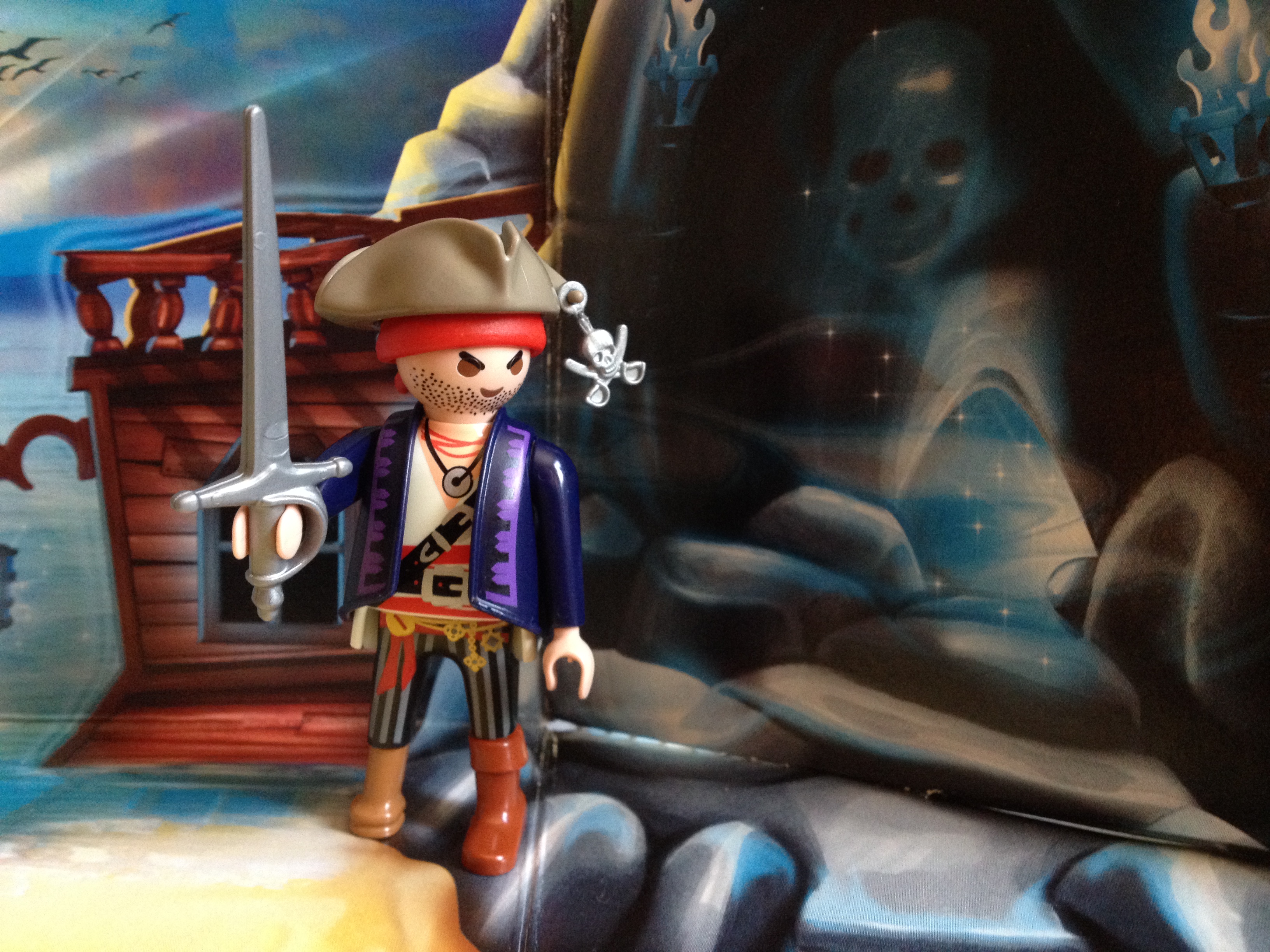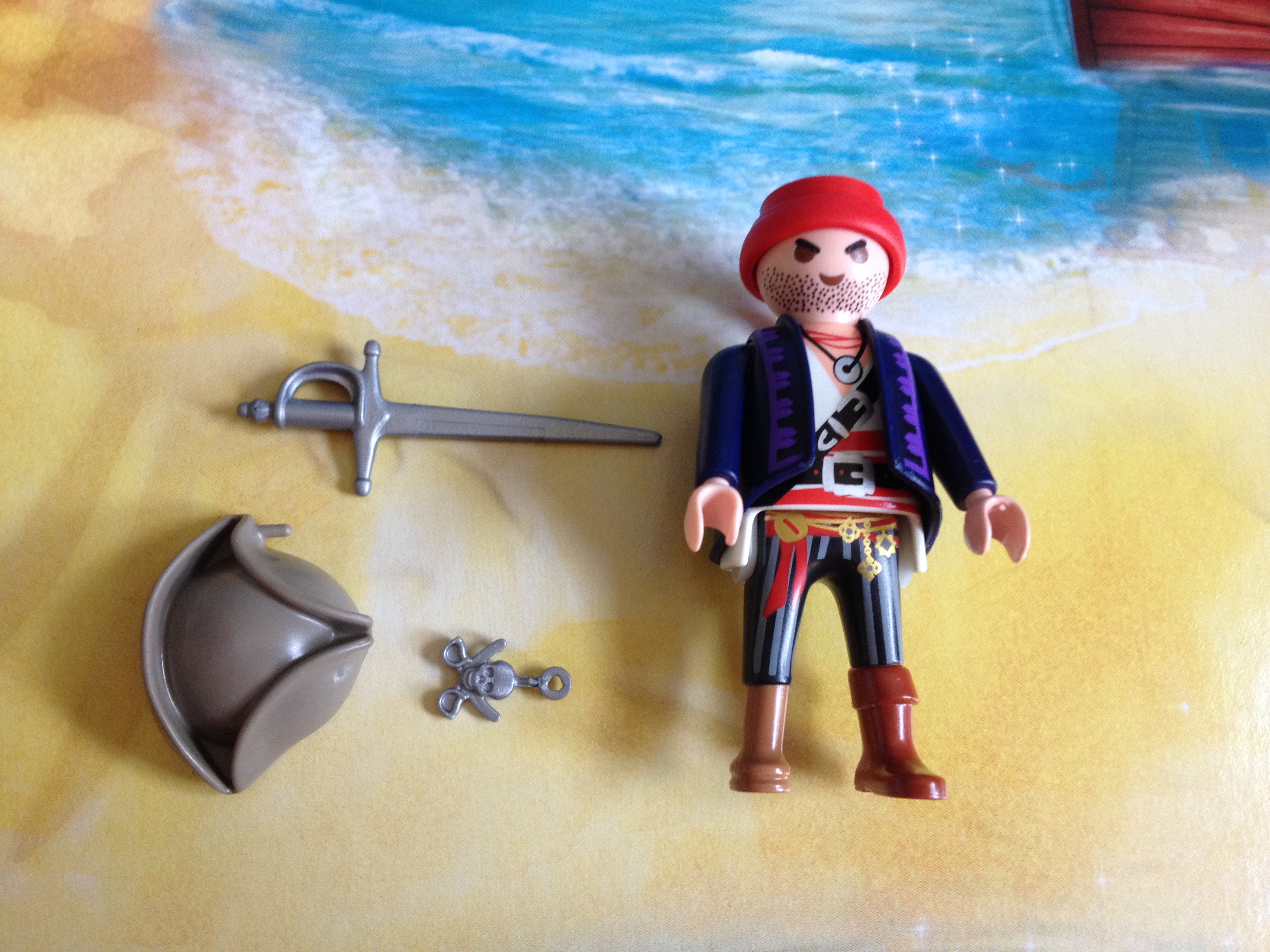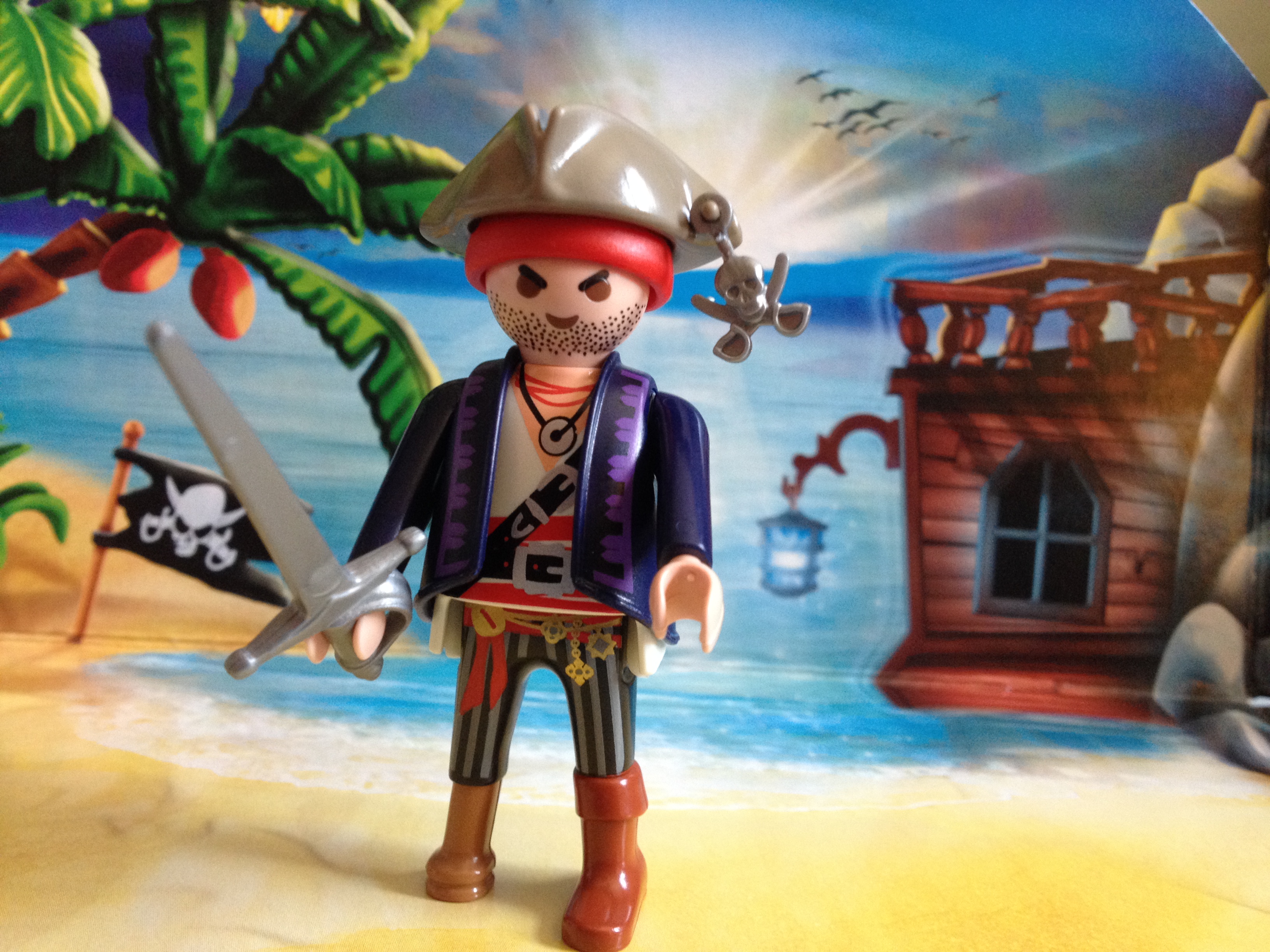 At first I thought he came with two hats, but the tri-corner hat fits atop of his red bandanna. It’s amazing. The tiny dangling skull thing is a lovely bit of flair that attaches to his hat and screams to the world, “Uh-huh!”
