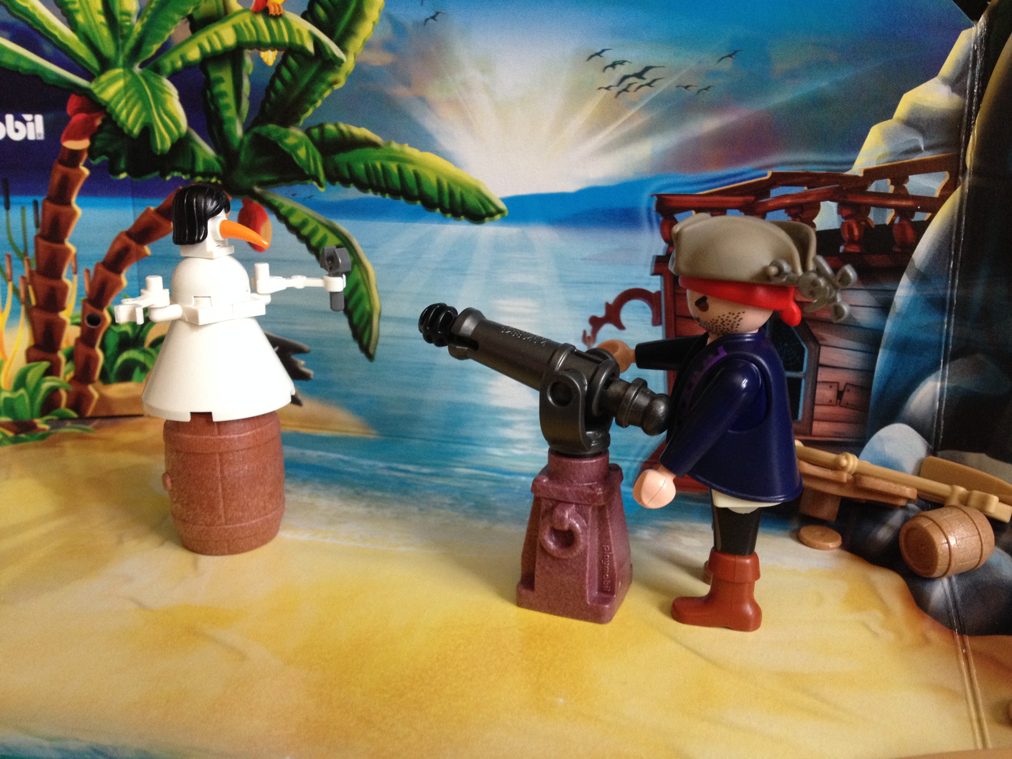 And unlike the Lego calendars, there is no symbol warning me against shooting people in the eye with this item. Thank you for not treating me like an idiot, Playmobil. Now lawyer up, because I’m about to poke out all kinds of eyes and teeth with this thing! I also want to see what one of these pieces feels like in my esophagus. Probably feels good. Only one way to find out.