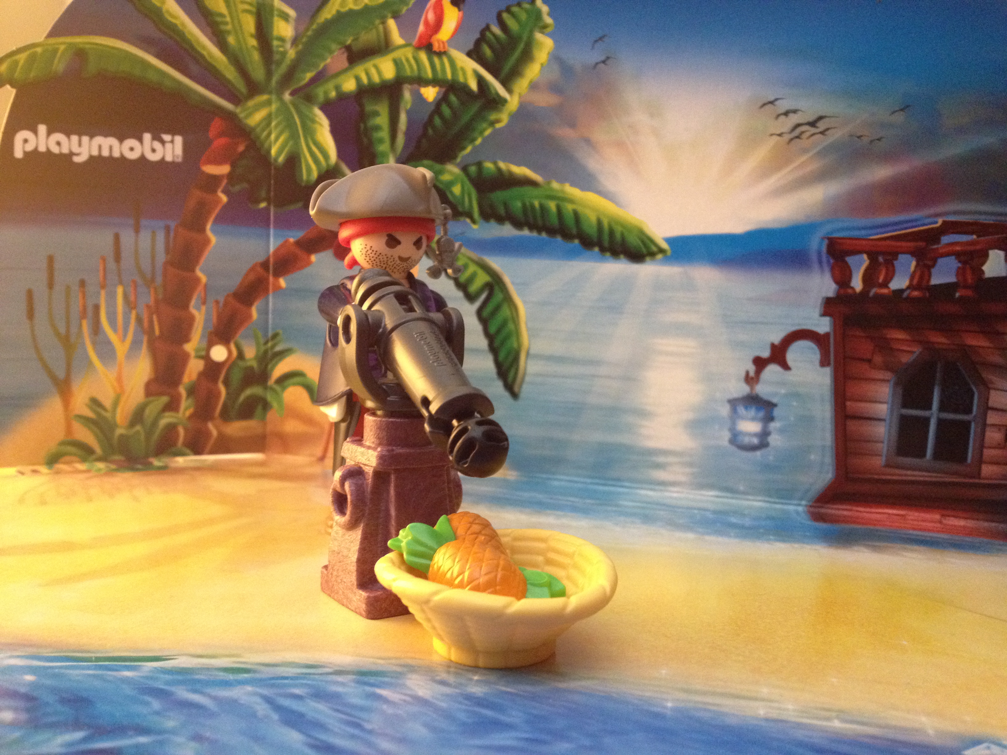 Jonas was going to shoot the pineapples as he whispered, “I’m sending you back to hell, Aggressive Bananas!” (He had never seen a pineapple before and, to be fair, they are as similar to apples as they are bananas.)