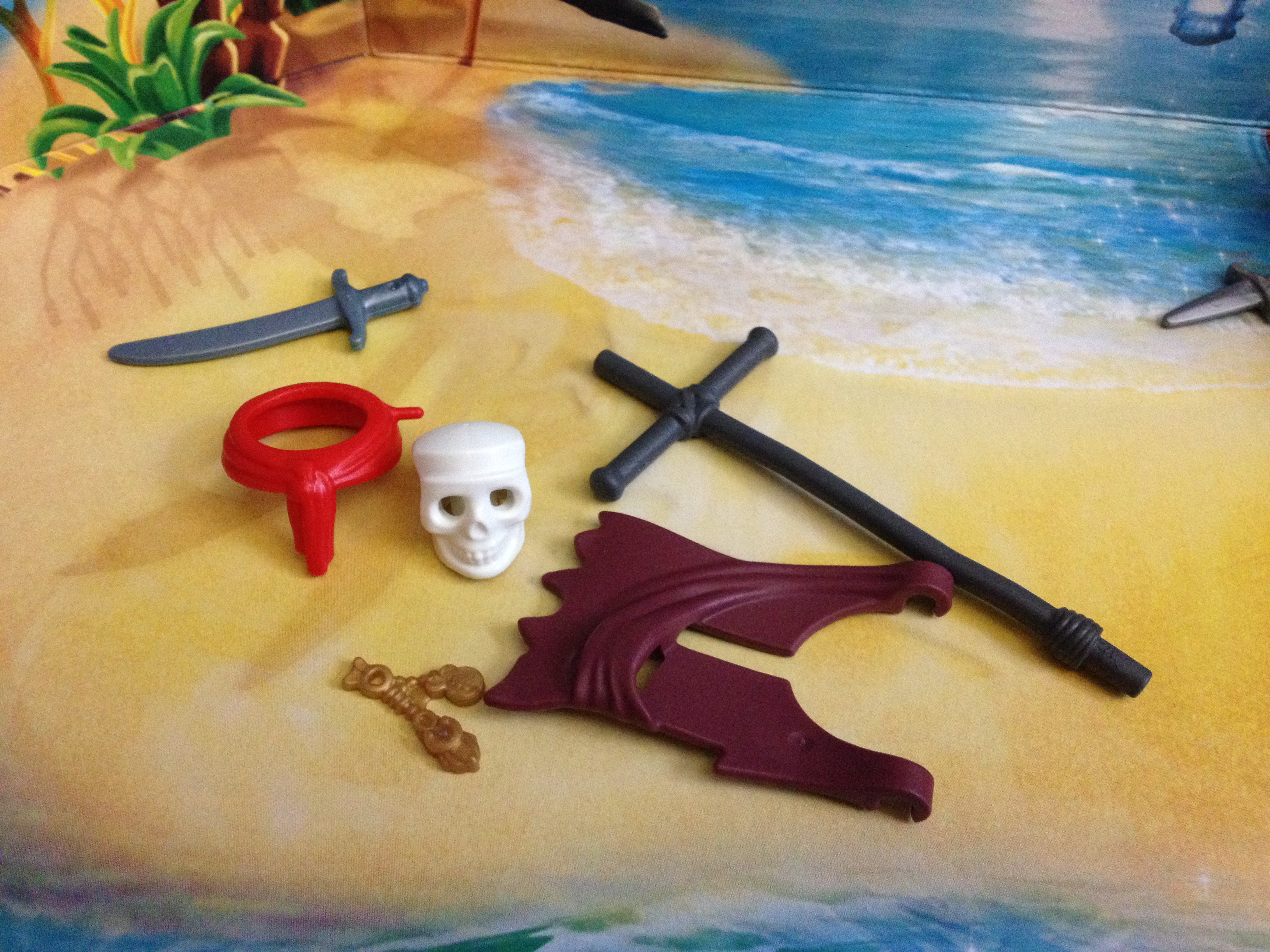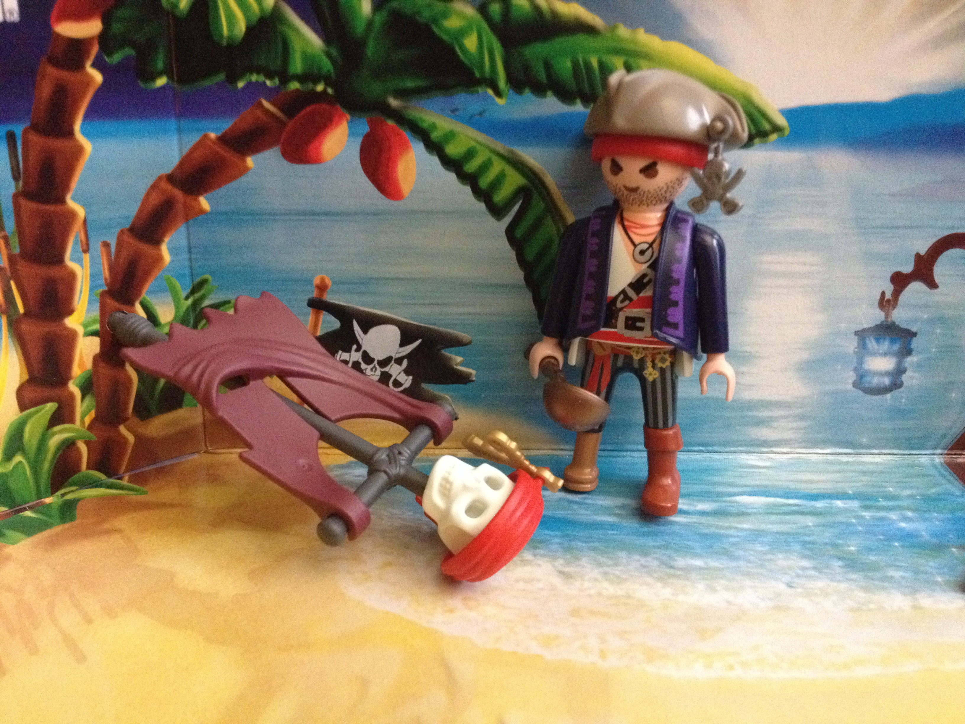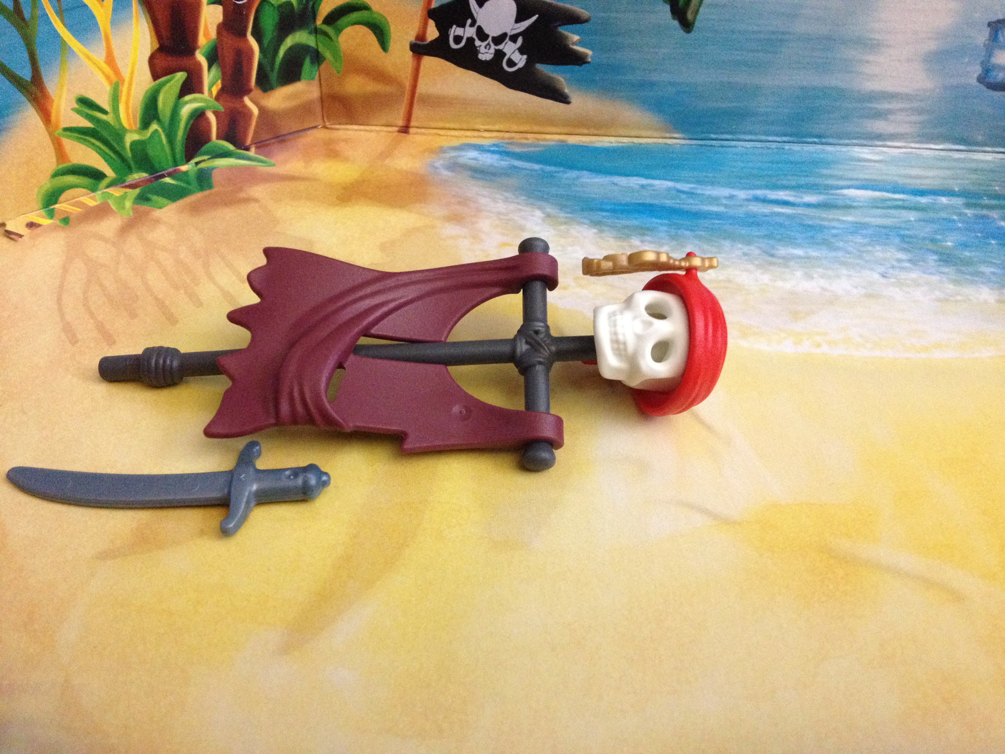 The pieces fit together into some sort of evil death pole. The skull is fantastic! I wanted another pirate, I just thought the pirate would still be alive. Oh well.