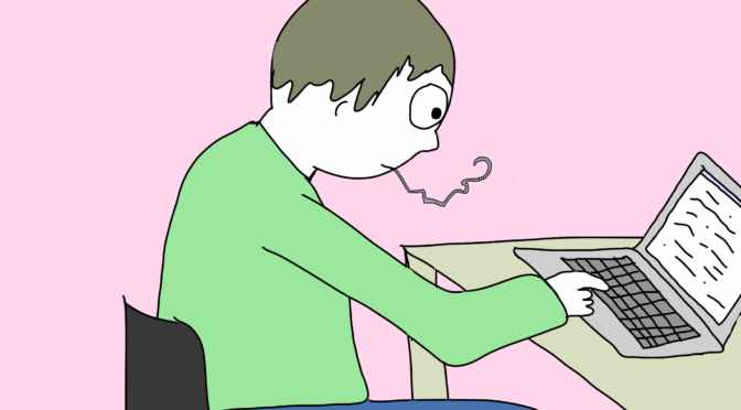 I sit down at my computer and press the F4 button. I don’t know what this does, but it feels necessary. Then I stand up and place a bent metal coat hanger in my mouth and turn my mouth God-ward, hoping that God will send me inspiration through this makeshift antenna. Once I feel the coat hanger warming up, I know God is contacting me and it’s time to write. (I keep the coat hanger in my mouth the rest of the day because I never want to know what happens if you hang up on God.)