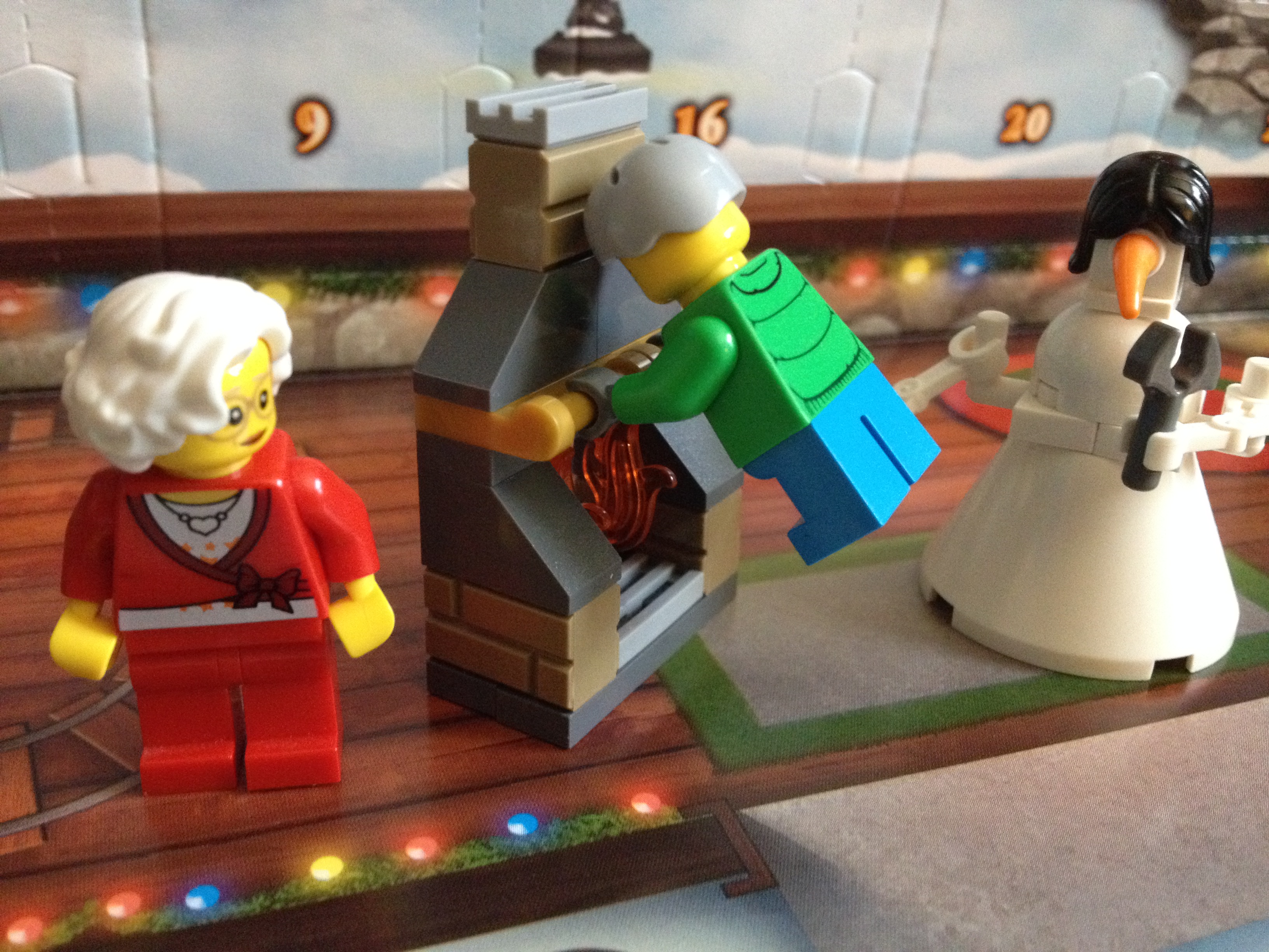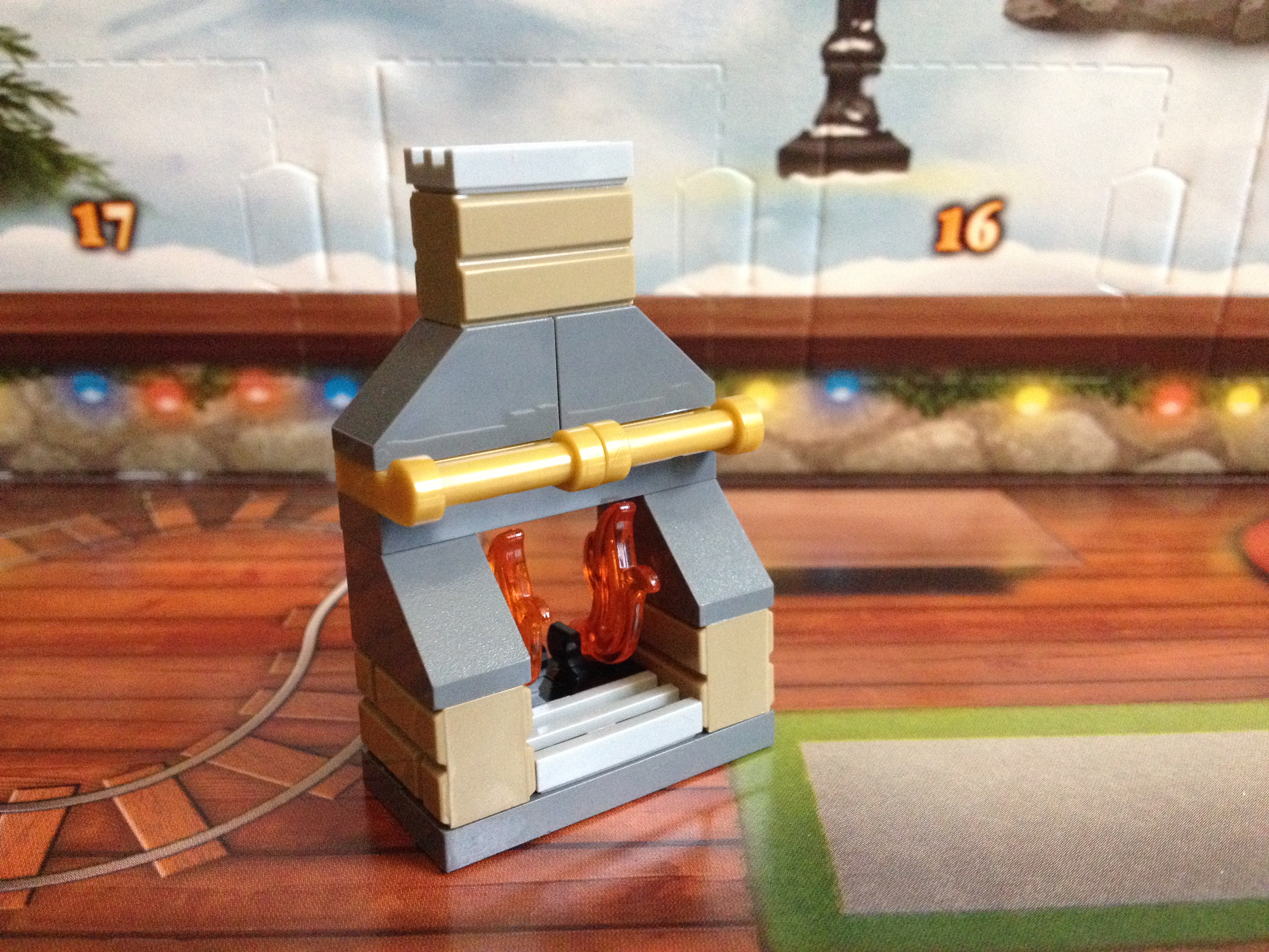 There is usually a fireplace in these calendars, but this one is particularly nice because it came with extra fire and brick-looking bricks. And handles?