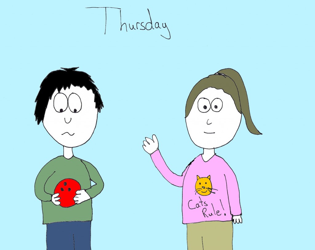 And, for simplicity’s sake, let us shorten our time frame to a single week, Sunday to Saturday. With me so far? Really? Pop quiz! What is the girl’s name? (Hint: It’s not Peaches.)
