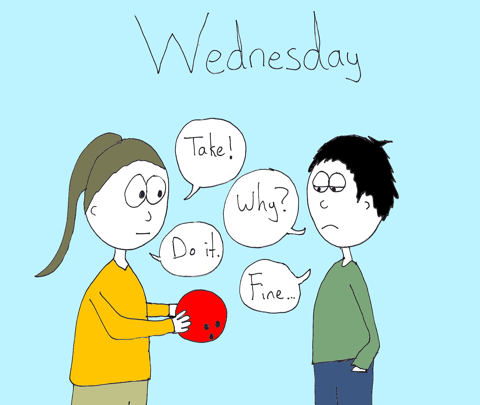 LISA-BARBIE: On Wednesday, you want me to give you back the bowling ball. And you will act as if you don’t know why. I understand.